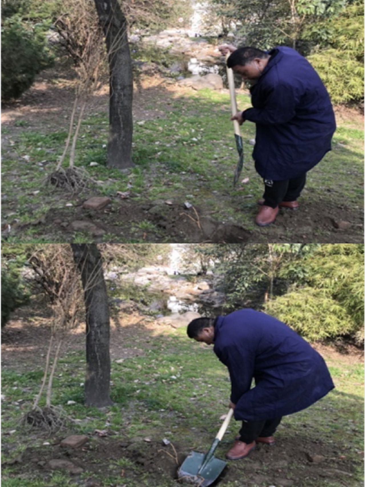 明媚的陽(yáng)光下,大家個(gè)個(gè)熱火朝天地忙碌著,用實(shí)際行動(dòng)詮釋著對(duì)大自然的熱愛(ài)。黨員、社區(qū)人員、物業(yè)人員互相密切配合著,分工明確,手持鐵鍬、樹(shù)苖、水桶,你挖坑,我扶苗,她填土……最后還不忘在小樹(shù)苗周圍翻新過(guò)的泥土上踩上幾腳,夯實(shí)泥土,讓小樹(shù)苗茁壯成長(zhǎng)。