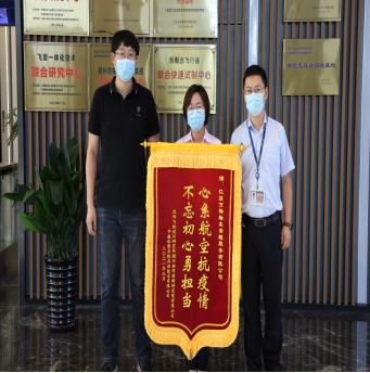 國慶節(jié)前期,沈陽飛機設(shè)計研究所揚州協(xié)同創(chuàng)新研究院有限公司和中航機載系統(tǒng)共性技術(shù)有限公司,將一面印有“心系航空抗疫情,不忘初心勇?lián)?dāng)”字樣的錦旗,送到了萬楊物業(yè)沈揚院項目經(jīng)理冷菲菲的手中,對項目員工優(yōu)異的工作表現(xiàn),表示了誠摯的感謝!這是項目獲得的最高榮譽。隊員們紛紛表示:將繼續(xù)保持和發(fā)揚恪盡職守、兢兢業(yè)業(yè)的工作作風(fēng),再接再厲,以更好的狀態(tài)優(yōu)質(zhì)完成甲方部署的各項工作任務(wù)。