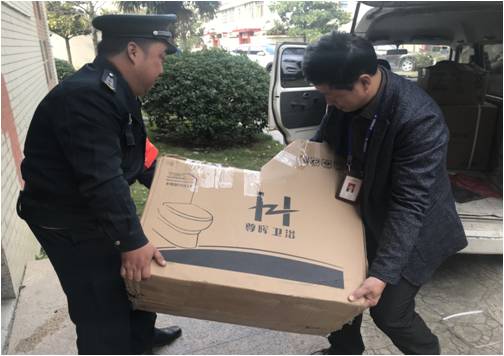 原來,21日下午,一位喬遷新居的業(yè)主正往住宅樓上搬運(yùn)家具,東西又大又重。這些家具是蔣先生雙十一時(shí)在網(wǎng)上購買的,快遞員表示家具送到業(yè)主手上就行了,不負(fù)責(zé)抬到樓上,說罷就把家具放在了85幢單元門口揚(yáng)長(zhǎng)而去,這可愁壞了蔣先生。經(jīng)理佘國祥和保安王歡巡查到85幢附近時(shí)看到蔣先生正一個(gè)人彎著腰,使勁的挪動(dòng)著家具,便上前詢問,得知情況后主動(dòng)幫忙。