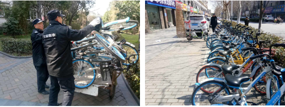 3月12日上午8:30,天氣陽光明媚,萊茵苑秩序維護(hù)隊長組織隊員對小區(qū)內(nèi)的共享單車集中清理。