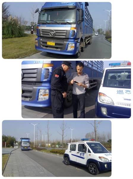 開始大家都認(rèn)為早晨霧大駕駛員可能作短暫的停留休息,可隨著時(shí)間的推移,眼看到了中午11點(diǎn)還是不見(jiàn)駕駛員將車開走,值日班長(zhǎng)董學(xué)虎于是撥打了110尋求幫助,無(wú)奈是外省籍車輛揚(yáng)州交警平臺(tái)一時(shí)無(wú)法查找到駕駛員的號(hào)碼。項(xiàng)目經(jīng)理和董學(xué)虎班長(zhǎng)一起對(duì)重卡再次進(jìn)行了仔細(xì)查看,發(fā)現(xiàn)駕駛室未鎖,進(jìn)入駕駛室后看到汽車鑰匙還掛在車上,想查看駕駛員聯(lián)系方式也沒(méi)有結(jié)果,但是在駕駛室內(nèi)一個(gè)快遞袋子上面收件人姓名和手機(jī)號(hào)碼引起了班長(zhǎng)董學(xué)虎的注意,正準(zhǔn)備撥打詢問(wèn)時(shí),車外來(lái)了一位是30左右的年輕人自稱是該車的駕駛員,看到園區(qū)物業(yè)巡邏車誤認(rèn)為是交警查違很是緊張。班長(zhǎng)董學(xué)虎首先安慰駕駛員不要緊張,不是來(lái)罰款的,是他的汽車停錯(cuò)了地方影響了非機(jī)動(dòng)車和行人的通行,特別是盲人的通行。再者重型車輛自身都特別重,對(duì)人行道及盲道將會(huì)造成嚴(yán)重的破損。