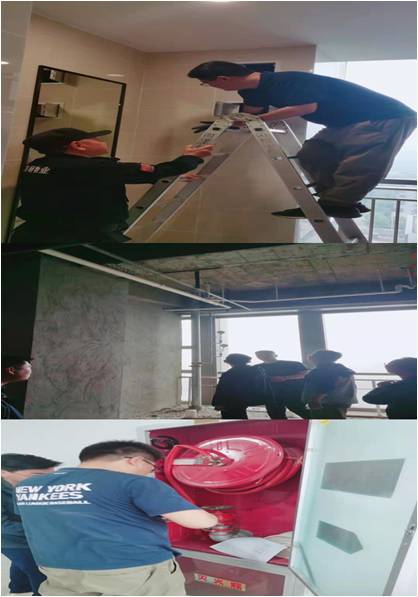 5月8日以來,相關責任單位的施工人員陸續(xù)來到沈飛項目,查看、關閥、開閥……因為甲方是保密單位,所以保安隊員們必須“如影隨形,不離不棄”地跟著,不讓拍照、不許大聲喧嘩、不準抽煙……在朱隊長的要求和陪同下,廣陵新城消防維保單位的專業(yè)人員,在認真檢查確認無誤后,在甲方領導的指導要求下,開始逐層注水……由于時間間隔太久了,有些管道的控制區(qū)域已記不太清楚,有些閥、表被裝修掩蓋很難找到……在冷經(jīng)理的指揮下,保安、保潔忙前忙后,不厭其煩……5月19日下午3時許,所有樓層的噴淋系統(tǒng)全部注水成功,沒有出現(xiàn)一處漏水的情況,在場的所有人都欣慰的笑了。