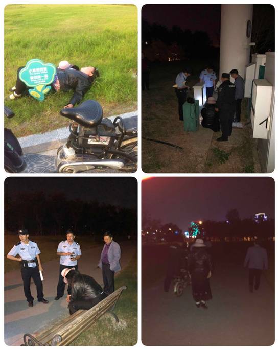 事情還得從7日的中午說起,該女士看上去50歲左右,中午1點左右獨自一人騎著電動車來到了中央公園。起初停留在足球場東側的草坪上休息,沒有引起物業(yè)保安的過多注意。直至下午5時許左右,該女子長時間滯留園區(qū)的異常行為引起了該區(qū)域步巡崗隊員曹子都的注意,上前詢問想了解一下的情況,不著邊際的回話確認了該女士智商存在問題,于是曹子都將情況通過秩序工作群向上進行了匯報。傍晚6時30分白班下班時,隊員曹子都還不忘提醒晚班同事接力關注智障女滯園后續(xù)動向。