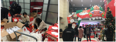 京東的圣誕晚會(huì)于晚上六點(diǎn)半開(kāi)始,京東考慮到員工參加晚會(huì)可能來(lái)不及吃晚飯,所以為每位員工準(zhǔn)備了能量包,萬(wàn)楊物業(yè)京東項(xiàng)目的客服、保潔、安保等一起幫助甲方包裝能量包,每個(gè)能量包里有奶茶、雞翅、雞排、薯?xiàng)l等等,一共兩百份包裝好后整齊有序的排列放好。活動(dòng)現(xiàn)場(chǎng)還用各式各樣的氣球做成的圣誕樹(shù)造型,圣誕老人還有拱門(mén)的造型這一個(gè)個(gè)氣球都是保安師傅一個(gè)個(gè)打出來(lái)的。