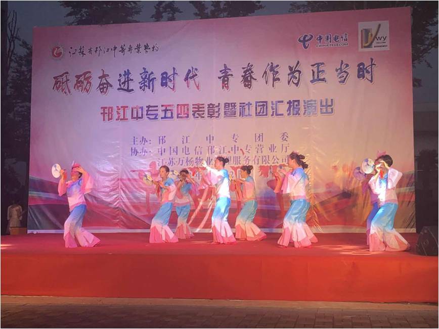 6月12日晚18點,邗江中專校園廣場變的熱鬧起來,由邗江中專主辦、江蘇萬楊物業(yè)管理服務(wù)有限公司協(xié)辦的校園社團(tuán)匯報演出拉開了序幕。這臺晚會的主題是“砥礪奮進(jìn)新時代,青春作為正當(dāng)時”,社團(tuán)各個小組的同學(xué)們表演了形式多樣,生動活潑,健康向上的文體活動。整臺晚會氣氛熱烈,掌聲不斷。