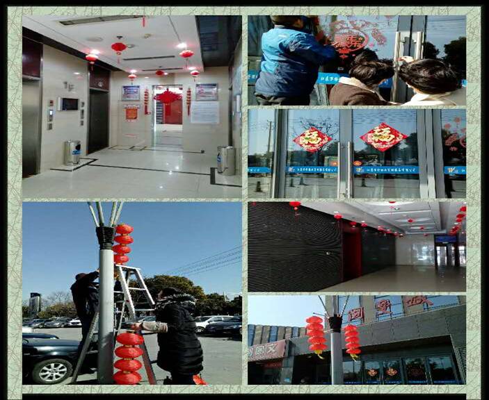 新年就要來(lái)到,為了營(yíng)造喜慶祥和的氣氛,213日一早,運(yùn)河城市廣場(chǎng)物業(yè)的工作人員就忙碌開了,他們買來(lái)了大大小小各式紅燈籠和“!弊帧⒋盎,帶上梯子,拿著剪刀、膠帶,將“!弊仲N上大門,將紅燈籠掛在了門廳、走廊、廣場(chǎng),將運(yùn)河城市廣場(chǎng)裝點(diǎn)的紅紅火火,讓運(yùn)河城市廣場(chǎng)洋溢著濃濃的中國(guó)年味!