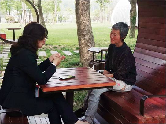 從語言交流看,該女士談話思路清晰,只說是天津人,出來徒步游行的,但身份及聯(lián)系方式不肯講。為放松該女士緊張情緒,了解更詳細信息,韋經理提出用巡邏車帶她到揚州人才公園游玩一下,該女士欣然同意了。在人才公園兒童樂園休閑卡座坐下后,韋經理與她嘮起了家常并與之互加了微信。初步了解,該女士叫董虎妹,48歲,丁克家庭,天津市人,護士出身,因身體原因離開了醫(yī)院;現(xiàn)在個人以徒步方式出來游玩,有時入住小旅館、有時就在開放式園區(qū)過道、廁所過夜……