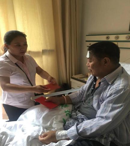 8月28日上午,項目經(jīng)理胡建華和秩序維護隊長曹長順及員工代表帶著慰問金和捐款共同前往蘇北人民醫(yī)院探望周小網(wǎng),鼓勵他勇敢與病魔抗爭。病中的周小網(wǎng)對大家的幫助表示深深的感謝,感謝公司領(lǐng)導的關(guān)心,感謝同事們的關(guān)愛。病魔無情,但人間有愛。ńK萬楊物業(yè)文昌花園項目部 俞莉莉)