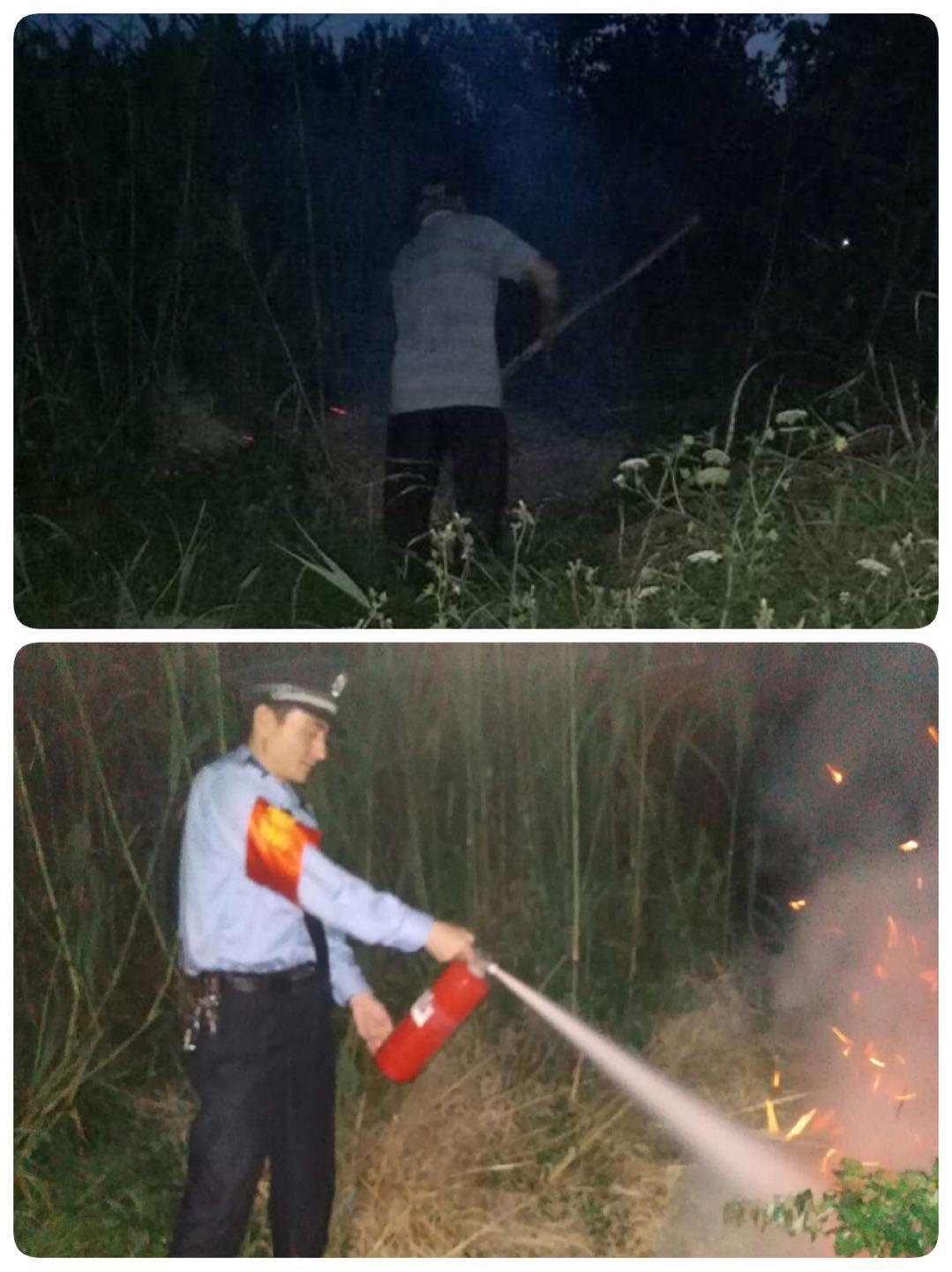 執(zhí)行晚班巡邏任務(wù)的車巡隊(duì)員許兵、汪長(zhǎng)林見(jiàn)狀,立刻通過(guò)中央公園工作群將情況上傳;同時(shí)按照項(xiàng)目火情預(yù)案和日常訓(xùn)練要求,許兵、汪長(zhǎng)林手提車載滅火器奔向著火點(diǎn),F(xiàn)場(chǎng)看見(jiàn)一位70多歲老大爺正多點(diǎn)位點(diǎn)燃油菜秸稈,隊(duì)員們邊大聲制止邊打開(kāi)滅火器滅火,好在火勢(shì)尚處初期秸稈火情很快得到了解除。滅火過(guò)后,隊(duì)員許兵、汪長(zhǎng)林兩人著裝汗?jié)瘢瑹焿m、顆粒也粘滿了全身。
