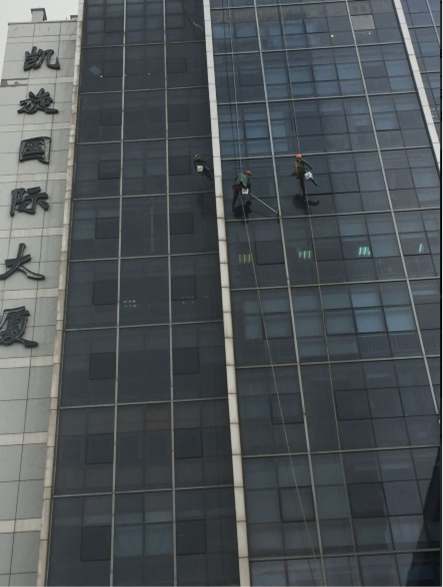 3月21日大廈幕墻清洗正式開始。清洗方式為高空吊板(蜘蛛人)清洗作業(yè),吊板方式為高空清洗,是既專業(yè)、又操作簡便、同時具有工作效益的一種。作業(yè)人員需要有豐富的實際操作經(jīng)驗和良好的身體條件等前題,同時相應(yīng)的安全措施到位,否則會具有極大的危險性。