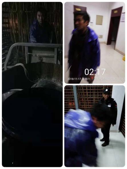 2018年11月17日凌晨2點,江蘇萬楊物業(yè)廖家溝城市中央公園秩序維護隊員連日的蹲守關(guān)注,終于“抓到”了固廁違規(guī)取用水人員。