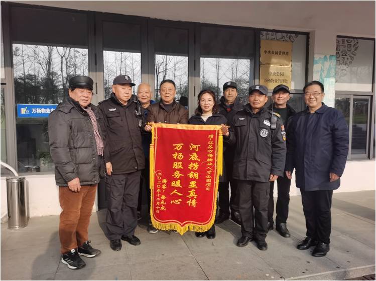 12月12日下午2點,江蘇萬物物業(yè)中央公園物業(yè)辦公室門前,來了5位特殊的客人,說是來園送錦旗致謝的,項目經理韋長英、保安隊長周懷月連忙起身迎接……