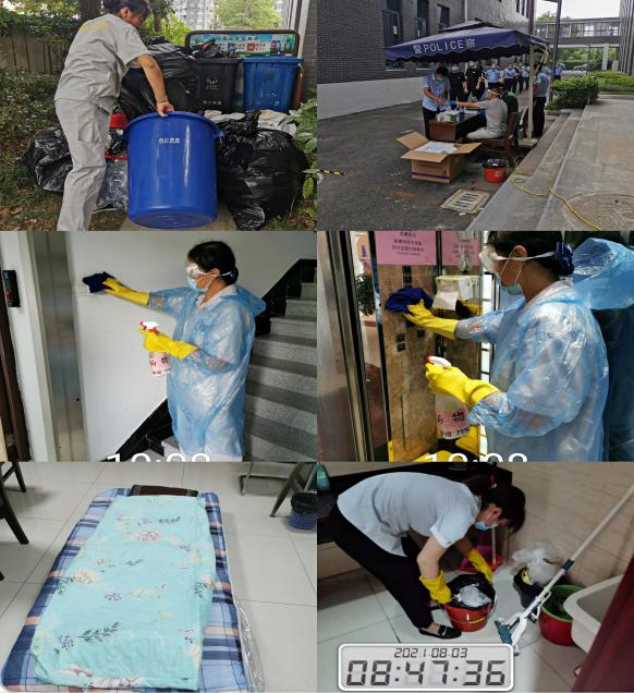 每天早晨六點殷正香就投入到工作中去,先是和項目經(jīng)理陳青青一起清理前一天的垃圾,對垃圾桶進行消毒,接著打掃一到七樓共12個衛(wèi)生間,然后還要對電梯和各個公共區(qū)域進行消毒,雖然辛苦,但跟投身到抗疫一線的公安干警、醫(yī)療工作者、社區(qū)工作者、志愿者們比起來都不算什么,他們在抗疫一線跟時間賽跑,烈日下汗流浹背,深夜里堅守崗位,無怨無悔,作為物業(yè)人我們必須堅守好自己的崗位,做好力所能及的事情,給他們一個干凈整潔的工作環(huán)境。