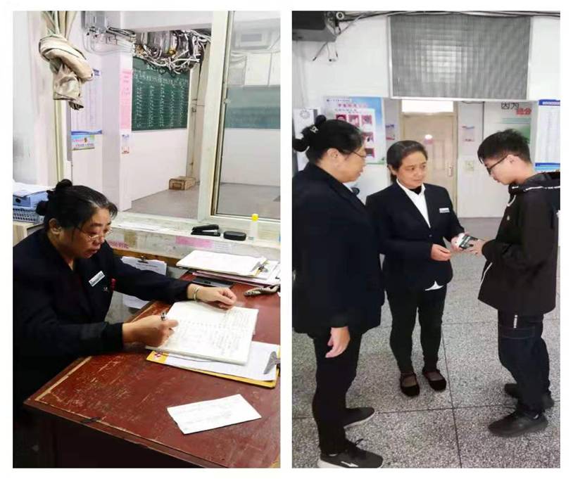 當(dāng)尤亞男巡視返回值班室時,發(fā)現(xiàn)412寢室的蘆思磊正在焦急的等她:“阿姨,我的手機丟了,可以幫我調(diào)監(jiān)控查找一下嗎?”宿管老師尤亞男微笑的詢問他是在哪里丟失的,手機是什么品牌,顏色是什么等等情況,確認(rèn)無誤后,打開柜子將手機交還給該生并做好登記。學(xué)生連聲感謝。