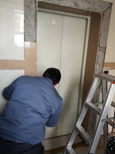 工程人員到現(xiàn)場后,發(fā)現(xiàn)確實快脫落,在做好警示后,輕輕的拆除松動大理石,并用橡皮錘敲打其他大理石塊,發(fā)現(xiàn)也存在空鼓松動,于是干脆將整個大理石門塊全部拆卸下,大家分工合作,對電梯周邊的大理石包口進行修復。維修結束后,為了加固處理,并在縫隙間打上螺絲固定好大理石塊。