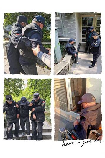 下午5點30分,他的家人終于回來了,于是楊班長先幫忙拿了輪椅,送老人到樓下,又扶著他上樓梯,一直安全地送到他家里,其家人連聲感謝,直言多虧了物業(yè)的幫助。(江蘇萬楊物業(yè)萊茵苑項目:陳安。