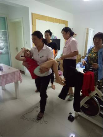 到了業(yè)主家,看見一個(gè)瘦瘦的小孩趟在沙發(fā)上,旁邊桌上扔著一堆沾著血跡的面紙,奶奶在旁邊著急的束手無策,看見物業(yè)人員到了,奶奶都著急的說不出話來,小王一邊安慰著奶奶一邊趕緊上前查看,看見小孩鼻子還在流血,建議說:“這樣不行,盡快送社區(qū)醫(yī)院,我先聯(lián)系我們小區(qū)車管員,請他把巡邏車開來!辈灰粫(huì)巡邏車就來了,王福萍抱起小孩就下樓,上了巡邏車直奔社區(qū)醫(yī)院,到了社區(qū)醫(yī)院,醫(yī)生檢查了一下說,這邊無法處理趕緊去蘇北醫(yī)院,小王掏出手機(jī)就為業(yè)主聯(lián)系出租車,孩子奶奶連聲說:“謝謝!謝謝!”小王和小武直到送她們上了出租車才放下心來。