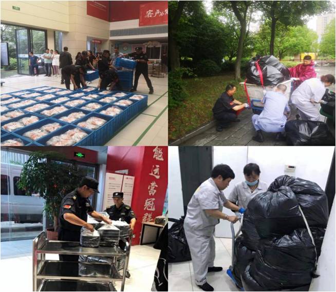 6月18日當(dāng)天的員工午餐都是由供應(yīng)商準(zhǔn)備好的盒飯,從接餐開始,物業(yè)的各部門就開始忙碌起來了,所有的安保人員全員待命,首先協(xié)助供貨商將所有的午餐卸載下來并放置到餐車上,等到甲方行政人員點(diǎn)好數(shù)量后再協(xié)助甲方將午餐發(fā)放至員工工位。天氣炎熱,所有安保忙得汗水浸濕了衣衫,但毫無怨言,任勞任怨。