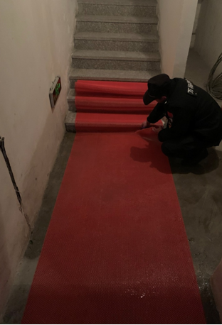 考慮到走公共維修基金需要一段時間,為了不影響業(yè)主的出行,物業(yè)中心安排保潔每天定時去該樓道查看,一旦有水就進(jìn)行清掃,并且購買了10米長的紅色防滑墊進(jìn)行鋪設(shè)。業(yè)主們對于物業(yè)采取的應(yīng)急措施表示了肯定。
