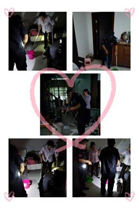 等到門打開后,室內(nèi)的情況也是一片狼藉,經(jīng)查看,是該戶地暖的水管爆了,從閣樓往下,家里全是水,燈也不能打開,防止給業(yè)主們?cè)斐筛髶p失,物業(yè)立即調(diào)動(dòng)人員來幫業(yè)主清掃室內(nèi)積水,大家忙的大汗淋淋,業(yè)主在視頻的那端連聲感謝,經(jīng)過1個(gè)多小時(shí)的清掃,室內(nèi)基本干凈,樓上下業(yè)主也互相說好回來見面后商談具體維修賠償事宜。